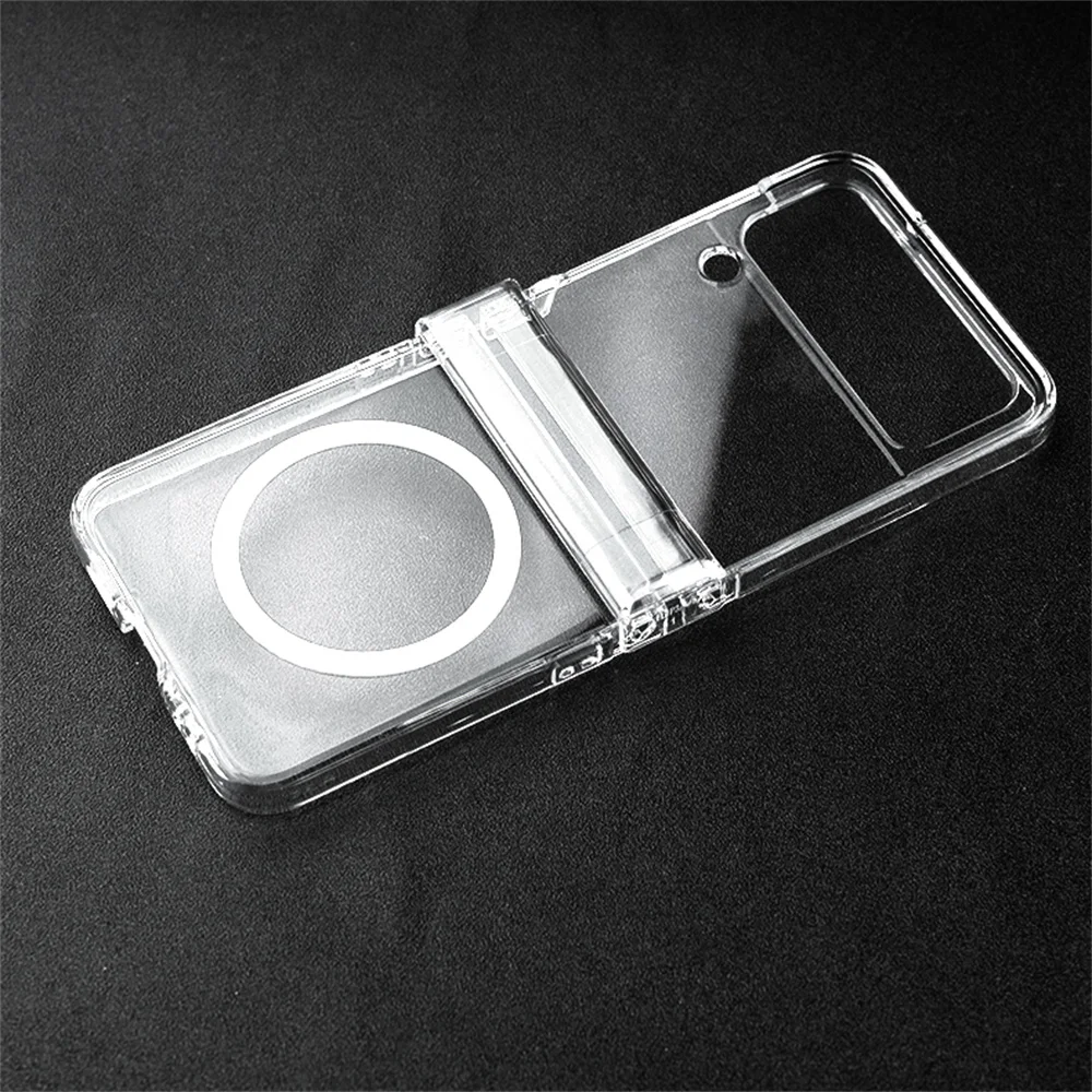 Clear Not Yellowing Magnetic Case for Samsung Galaxy Z Flip6 Zflip5 ZFlip 3 4 5 6 Flip3 ZFlip4 Hinge Magsafe 3in1 Acrylic Cover