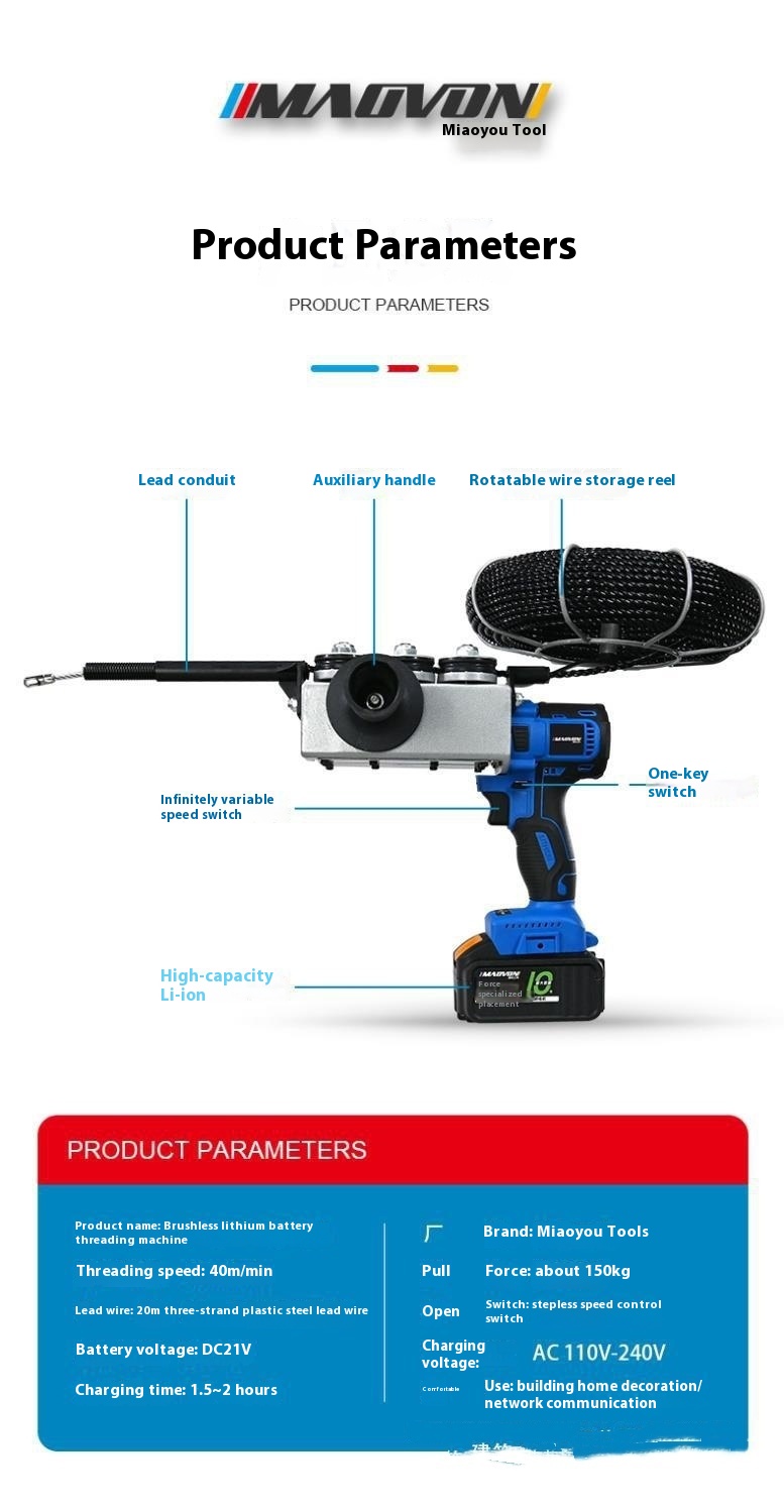 Specification: brushless 6-wheel threading 30 m (10 sections cell) single power