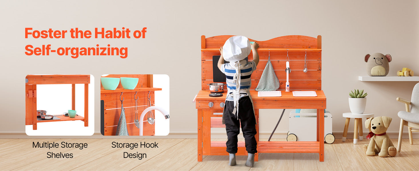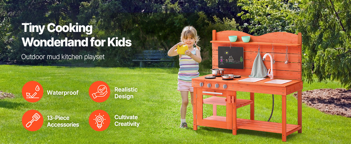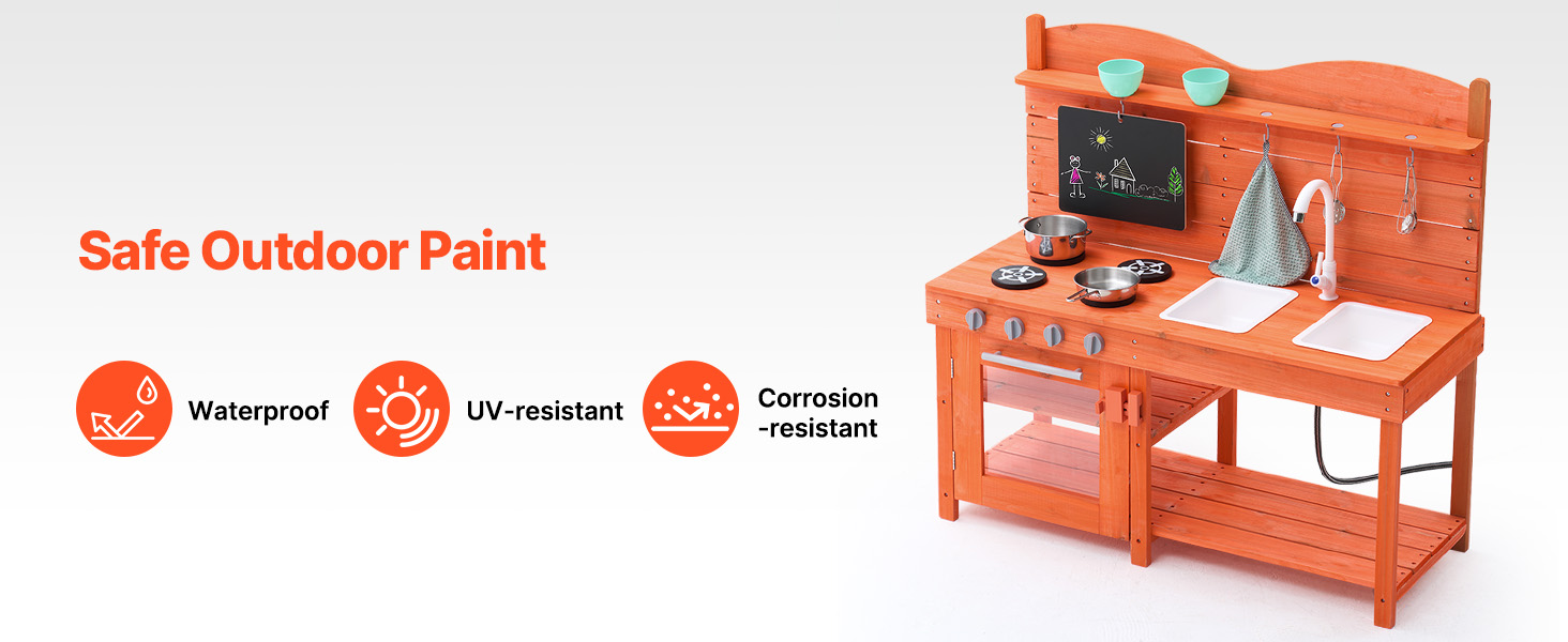 This imaginative toddler play kitchen is treated with outdoor-grade paint for water and corrosion resistance, making it ideal for outdoor environments like gardens, backyards, and lawns.