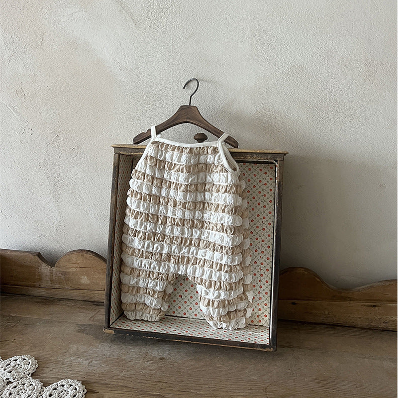Thin Pants Baby Tank Tops Puff Plaid Jumpsuit